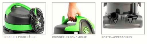 Rangement du câble facilité grâce à un crochet au niveau de la tête